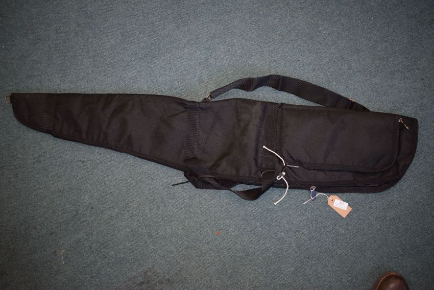 Black padded rifle slip with carry handles and shoulder strap, fitted external pocket.