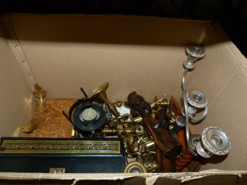 Box Containing Brass & Treenware