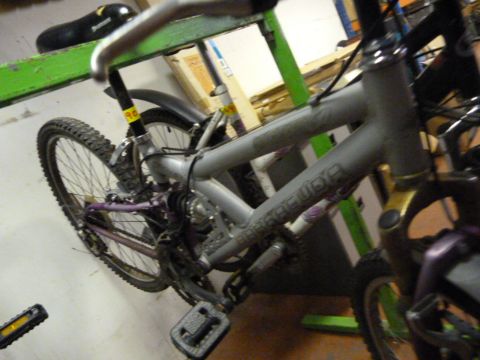 Silver & Purple Mountain Bike with Suspension