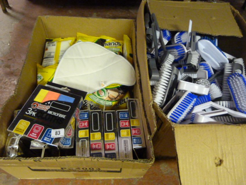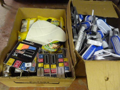 Box Containing Handy Wipes - Micro Fibre Cloths etc & Box Containing Assorted Washing Up Brushes