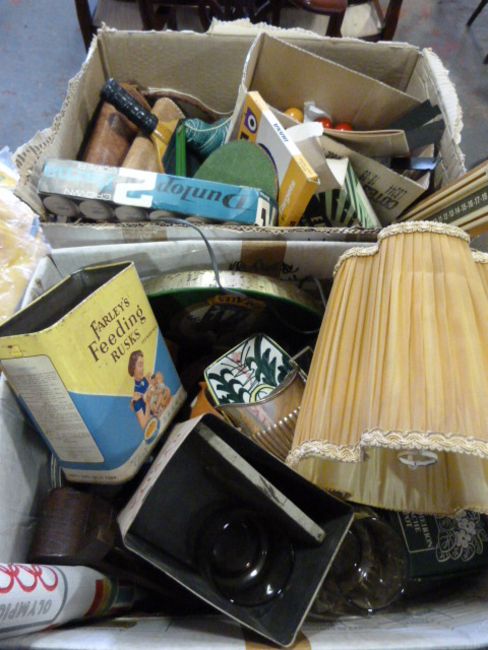 2 Boxes Containing Assorted Vintage Tins - Games - Silver Plated Ware etc