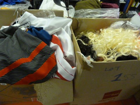 2 Boxes Containing Various Costumes - Wigs - Swords etc