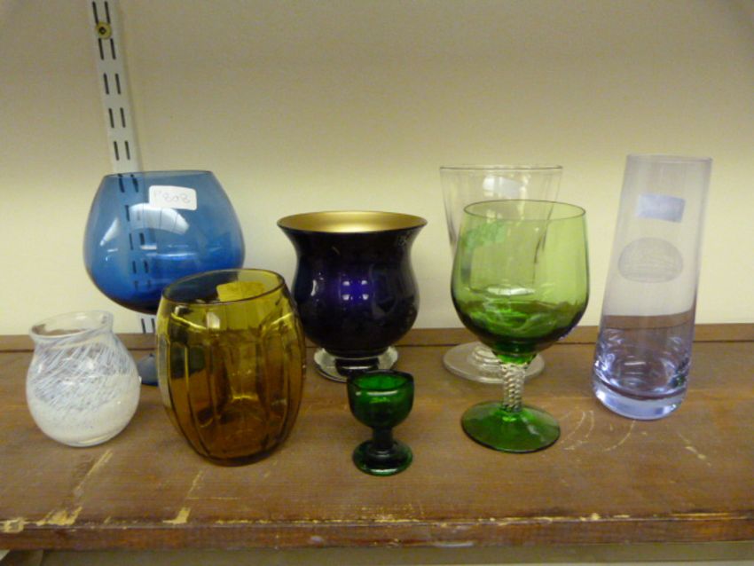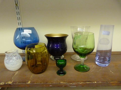 Collection of Coloured Glass Vases etc