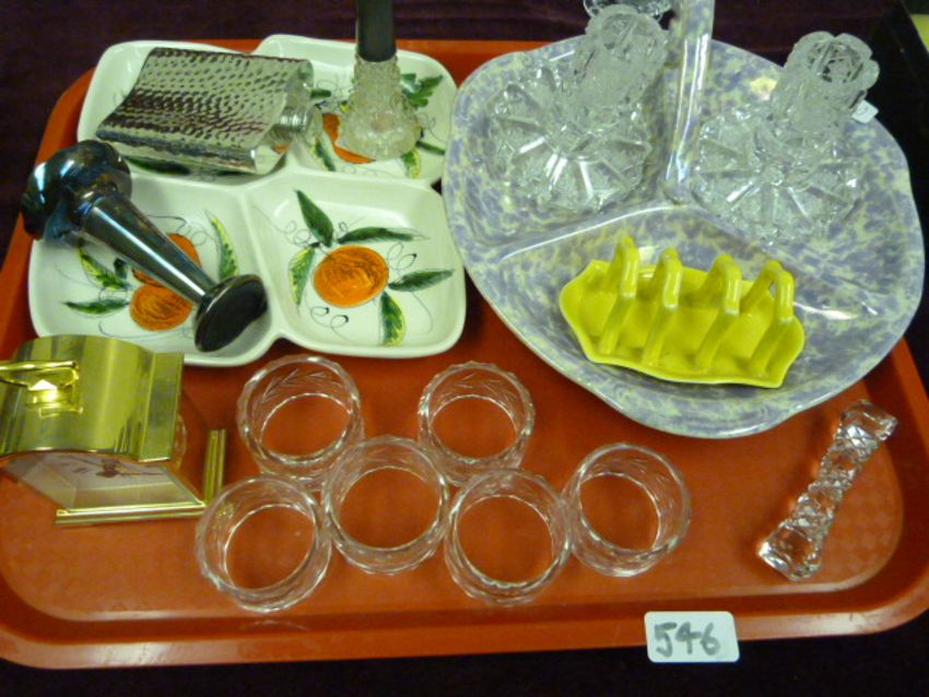 Tray Containing Glass Napkin Rings - Mantle Clock etc