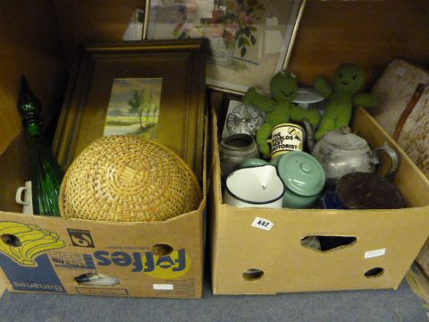 2 Boxes of Older Bric-a-Brac Including Kitchenalia - Glassware etc