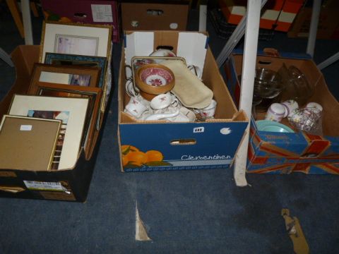 3 Boxes of China & Glassware & Framed Prints