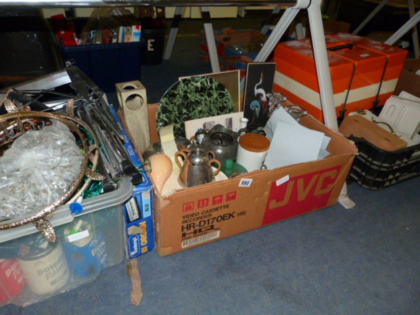 3 Boxes of Bric-a-Brac Including Plated Ware - Glass Candle Sticks etc
