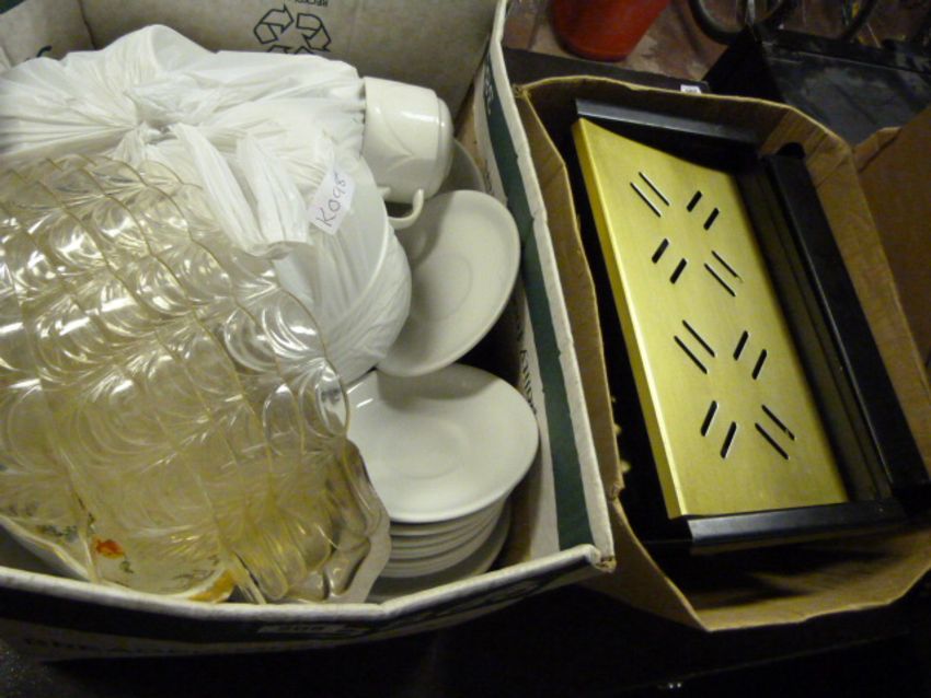 Box Containing White Crockery - Glass Dishes & Box Containing 4 Heated Plates