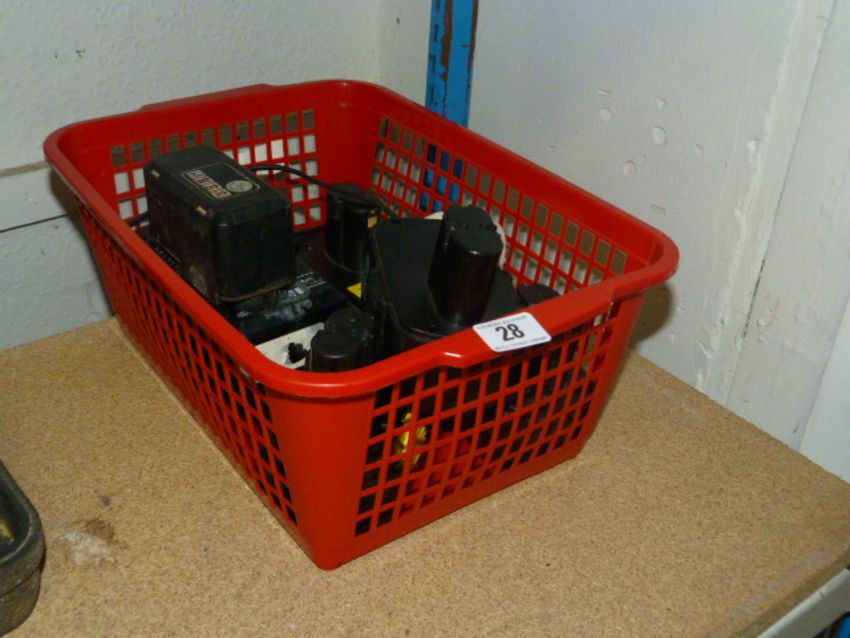 Basket Containing Assorted Chargers & Batteries