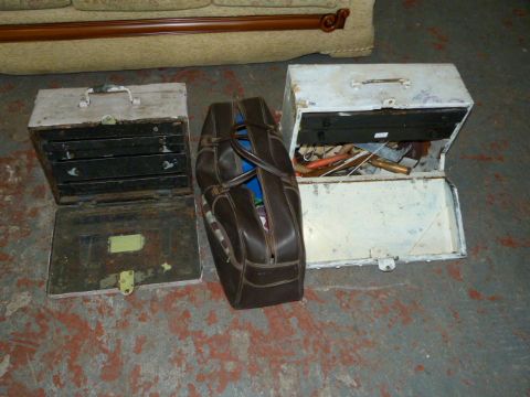 2 Joiner's Tool Boxes & Bag Containing Various Hand Tools