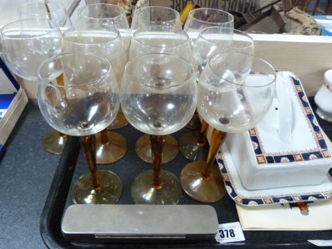 Tray Containing Assorted Wine Glasses - Cheese Dish - Train Prints etc