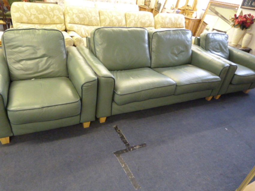 3 Piece Suite in Green Hyde Comprising of 2 Seat Settee & 2 Chairs