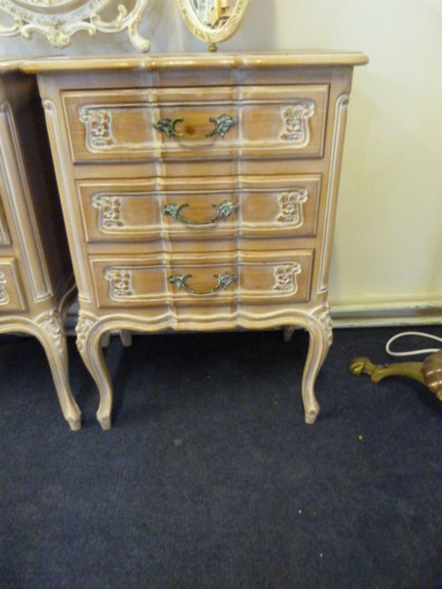 3 Drawer Bedside Cabinet on Cabriole Legs in Shabby Chic Finish