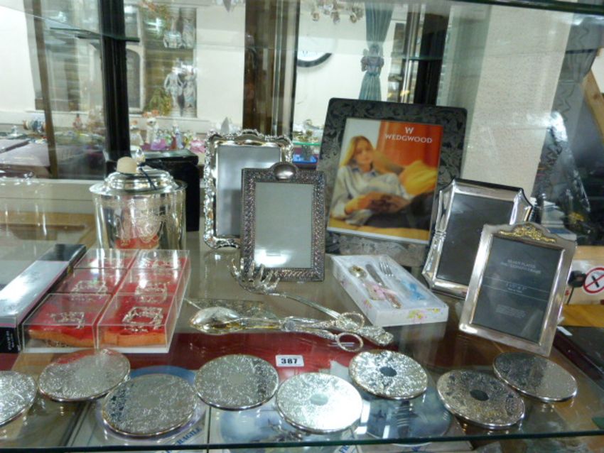 Large Quantity of Silver Plated Frames - Biscuit Tin - Napkin Rings - Wedgwood Frame - Silver Plated Cutlery etc