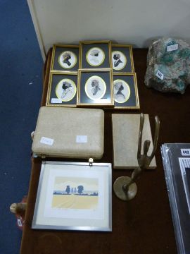 6 Gilt Framed Miniature Portraits - Brass Figurine - Plated Cutlery etc