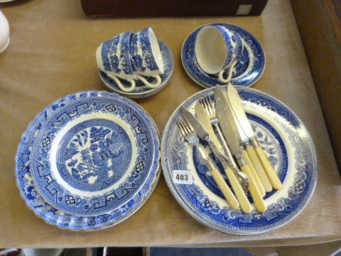 Collection of Blue & White Dinnerware & Small Quantity of Plated Cutlery