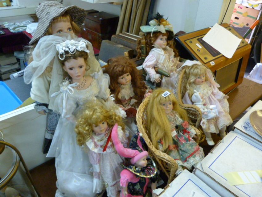 Collection of Porcelain Headed Dolls & Doll Chairs