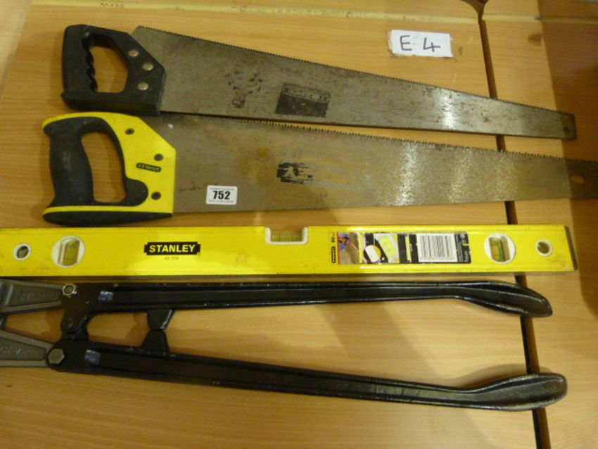 *Assortment of Hand Tools including 2 Saws, Spirit level, etc.