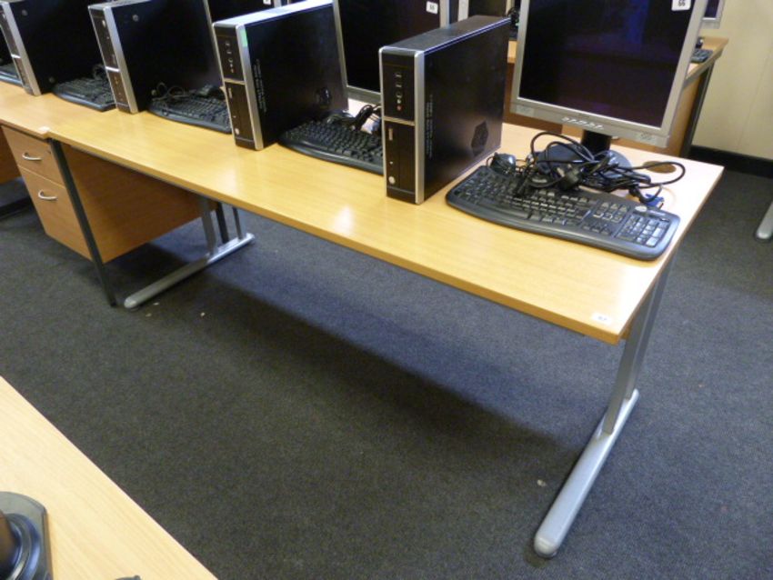 *Simulated Beech Double Desk on Grey Metal Legs
