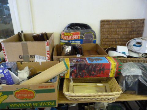 3 Boxes of Bric-a-Brac Including Kitchenalia - Lighting - Picnic Hamper & Contents etc