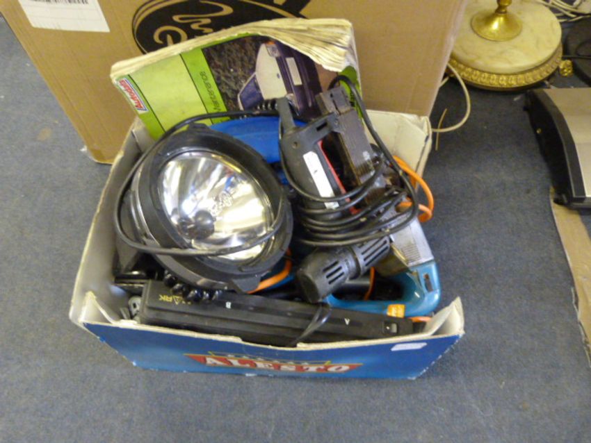 Box Containing Hand Tools, Radios, Lamps etc