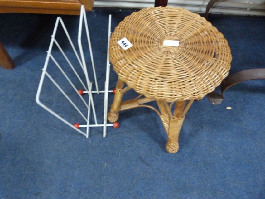 1950's Magazine Rack & Wicker Stool