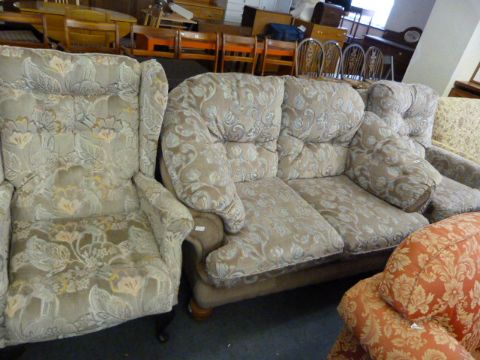Floral Patterned 2 Seat Settee & Recling Chair with High Back Chair