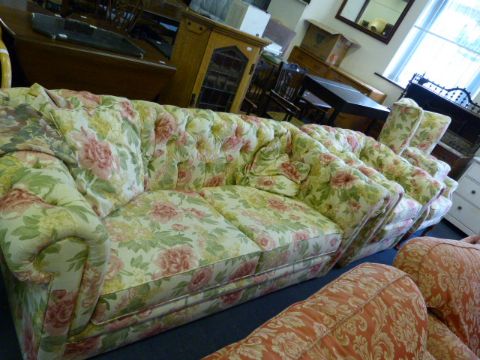 Floral 3 Seat Settee - Single Chair & High Back Chair with Foot Stool