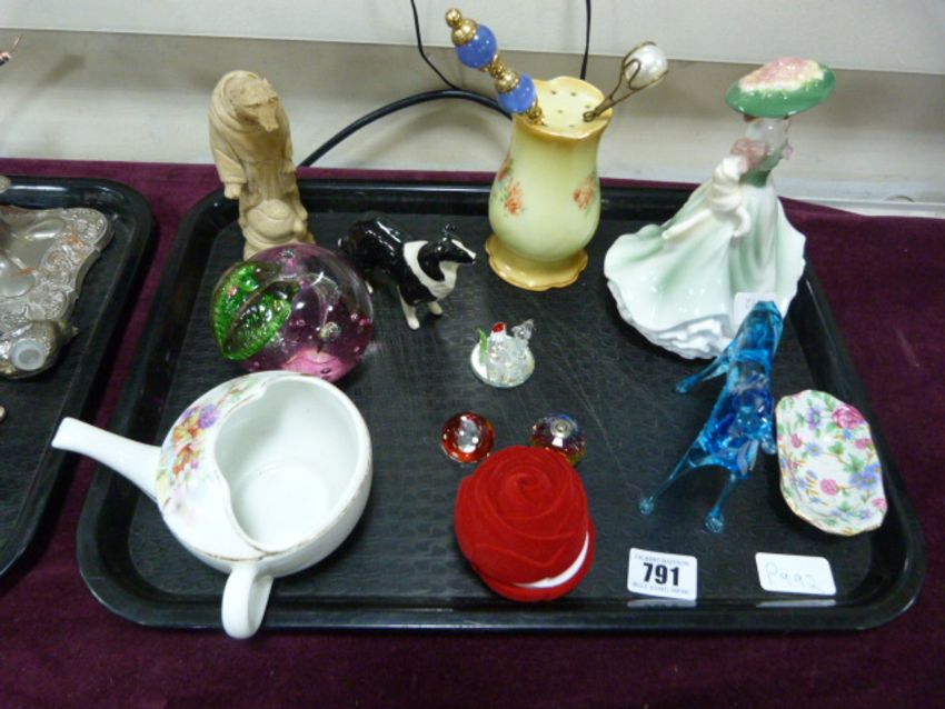 Tray of Collectable China & Glassware Including Royal Worcester Hannah Figurine - Pin Dishes - Glass Paper Weights etc