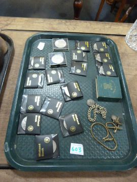 Tray of Commemorative coins etc