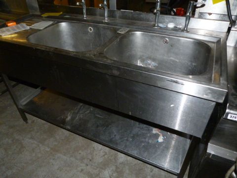*Stainless Steel Double Commercial Sink Unit with Left Hand Drainer - Lever Taps & Under Shelf (59 x 25)