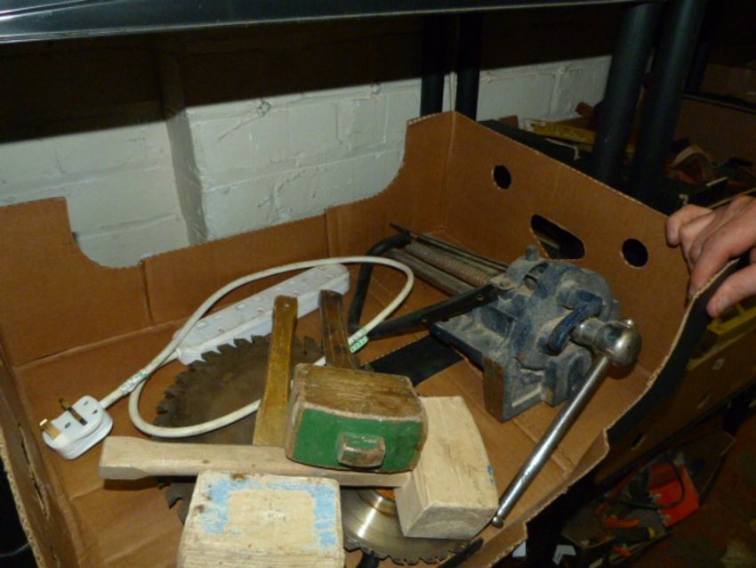 *Box Containing Wood Mallets - Saw Blades & Quick Release Vice