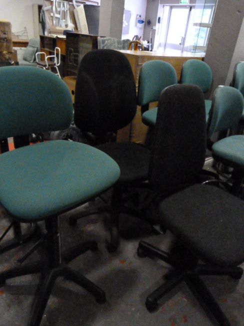 2 Office Swivel Chairs (1 Black 1 Green)