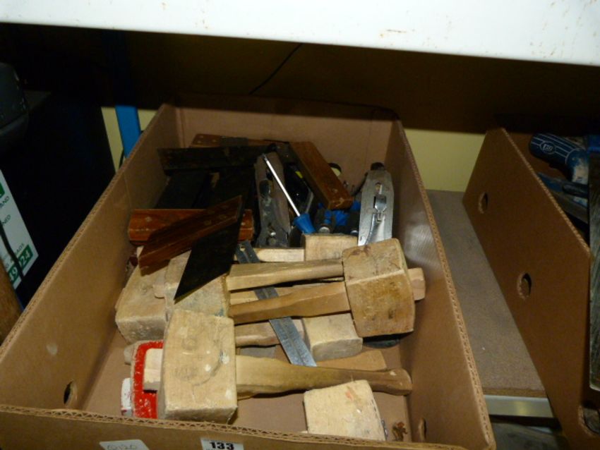 *Box Containing Joiner's Mallets - Wood Planes - Tea Squares etc