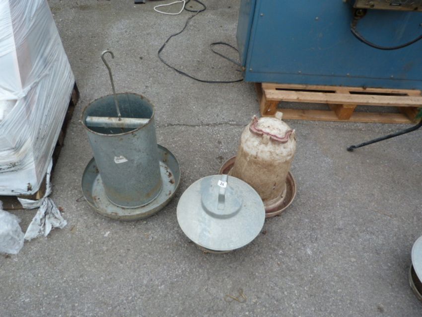 *2 Galvanised & 1 Plastic Poultry Feeders