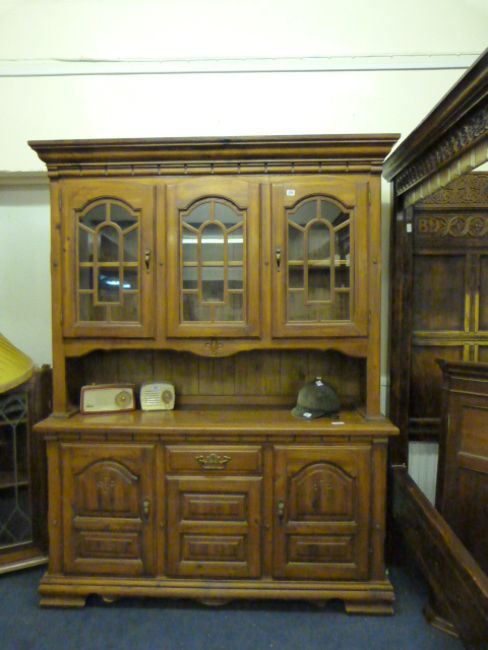 Pine Glazed Display Cabinet over Side Board