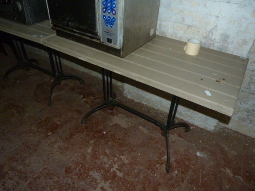 Pair of Cast Iron Tables with Wood Tops