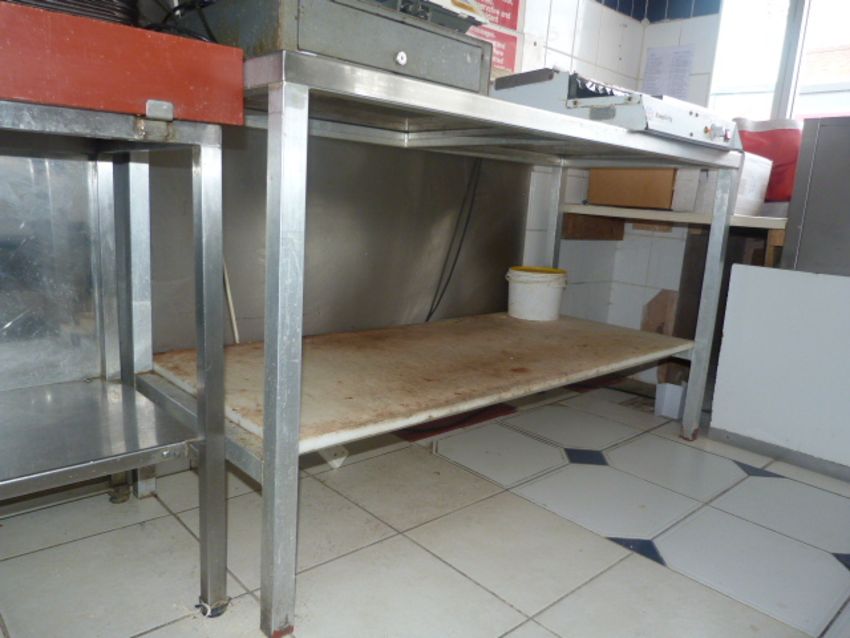 Stainless Steel Preparation Table on Aluminium Frame complete with Large Polythene Chopping Block 57 x 24