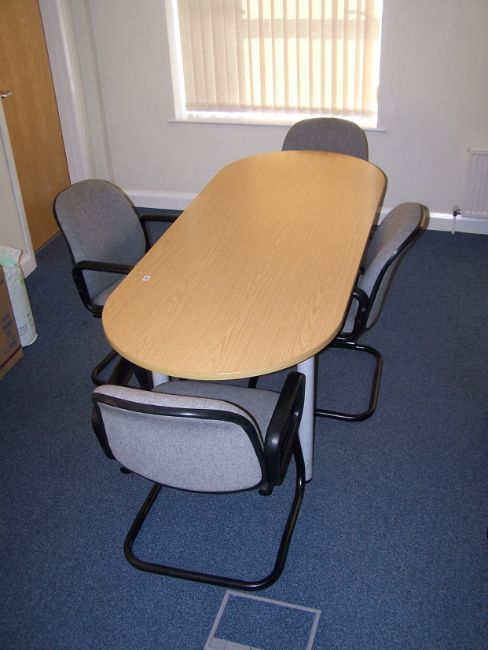 *Light Oak Effect Oval Meeting Table & 4 Light Grey Chairs