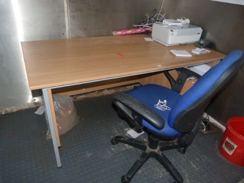 Single Pedestal Desk - Typist Swivel Chair in Blue & HP Printer
