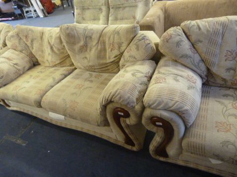 Cream Floral Design 3 Seat Settee & 2 Single Chairs