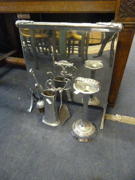 Art Deco Chrome Firescreen - Companion Set & Ashtray