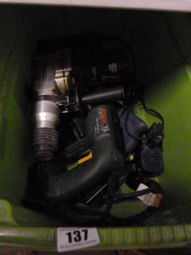 Box containing Assorted Power Tools