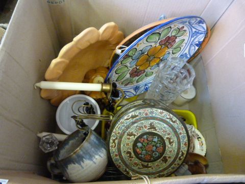 Box of Bric-a-Brac containing assorted Plates - Figurines etc