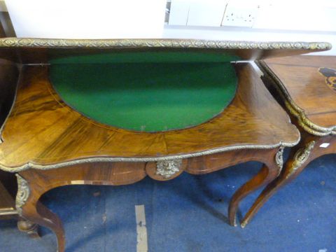 Pair of Walnut Inlaid Fold over Card Tables with Ormalu Decoration