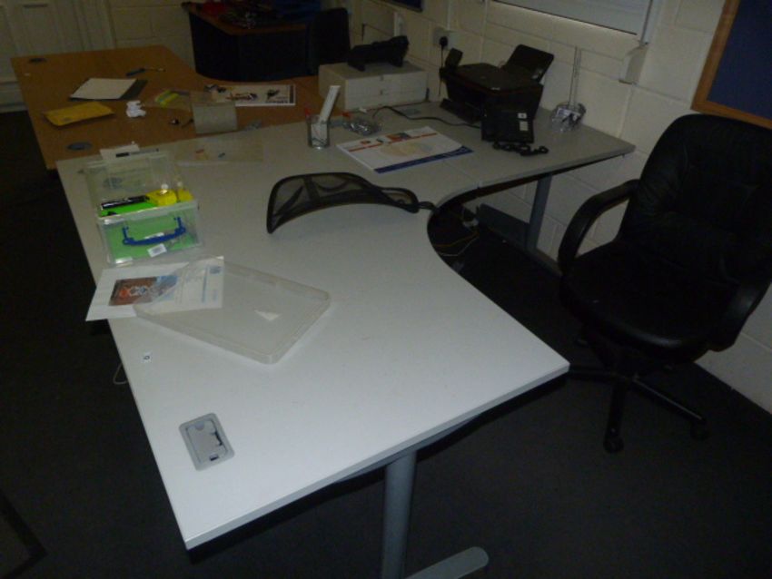 *Grey L Shape Desk With Side Table & Swivel Chair