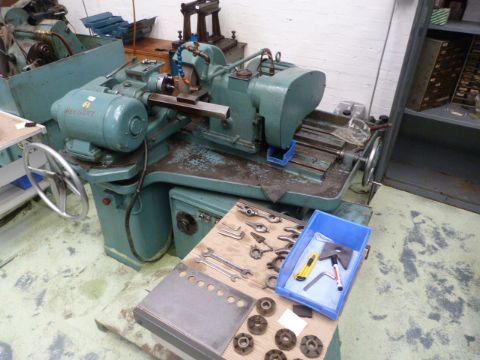 Hydrovane Compair 504 Screw Compressor on Receiver, Churchill 26249 Shaft/Shank Grinder, Herbert Shaft/Shank Grinder,2 x S & B Tread Grinders, Vickers Ltd HTM8929 Hardness Tester, Nikon R14 Profile Projector, Matrix 37 Tread Grinder, Matrix Precision Measuring Gauge, Sigma Instruments and Co Precision Measuring Gauge, Assorted Micrometers and Measuring Gauges, Draper Bench Grinder, Wickman and Moulton Centre Lathe, Mituoyo Profile Projector, OMT Optical Measuring Tool, Matrix Type TS Pitch Measuring Gauge, Mituoyo Profile Projector PJ250, Avery Type 6402 Hardness Tester, Platform Scales, Barrel Mover, Pallet Strapping, Assorted Goliath Branded Packaging, 37 Bays of Medium Duty Racking with Boards, Large stock of Taps, Dies and Treading Tools, TEC Label Printer with PC and Other Printers, Assorted Packing Tables, Desk and Chairs, Etc…