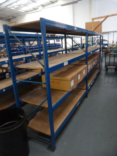 *3 Bays of Medium Duty Blue Racking with 12 Boarded Shelves