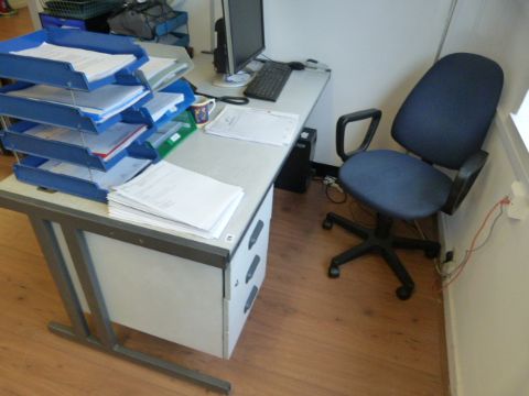 *Grey Single Pedestal Desk with Typist's Blue Swivel Chair