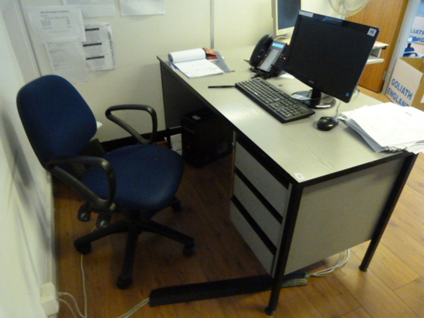 *Grey Single Pedestal Desk with Typist's Blue Swivel Chair